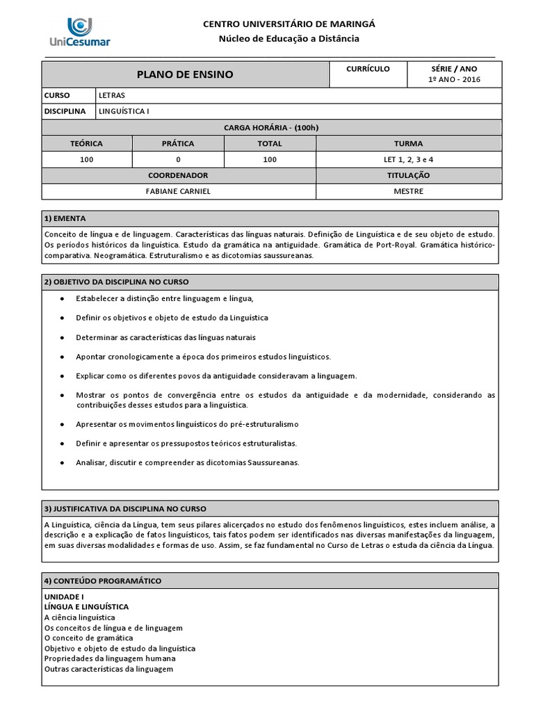 Conceito de língua e de linguagem. Características das línguas naturais. Definição de Linguística e de seu objeto de estudo.