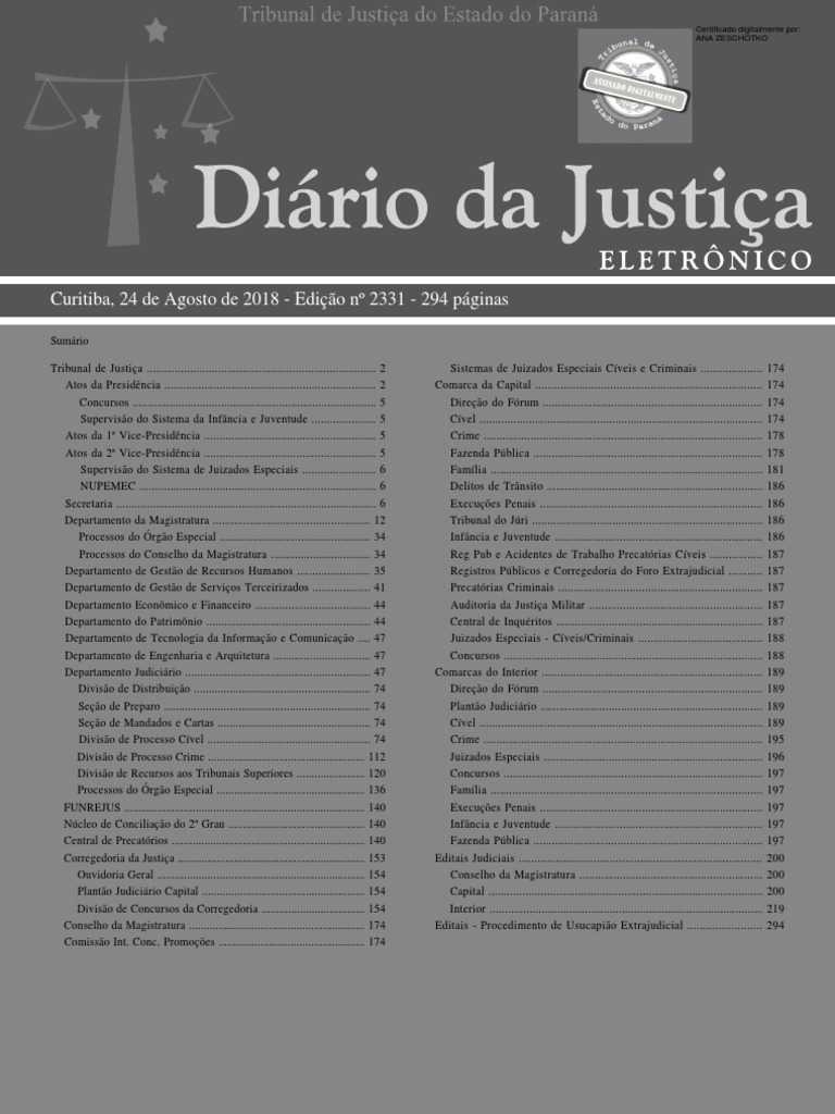 Diário Eletrônico do Tribunal de Justiça do Paraná