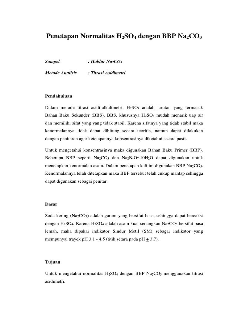 Penetapan Normalitas H2SO4 dengan BBP Na2CO3