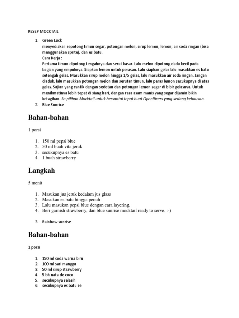 ketagihan. So pilihan Mocktail untuk bersantai tepat buat OpenRicers yang sedang kehausan.