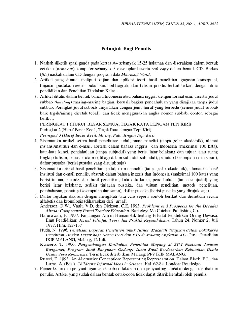 1. Naskah diketik spasi ganda pada kertas A4 sebanyak 15-25 halaman dan diserahkan dalam bentuk