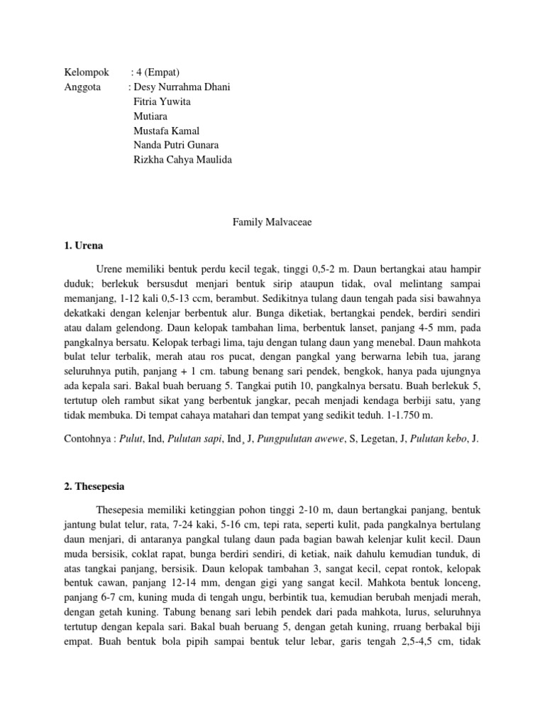 4. a. Epicalyx kecil tidak ada artinya, lebih pendek dari pada kelopak dan segera rontok