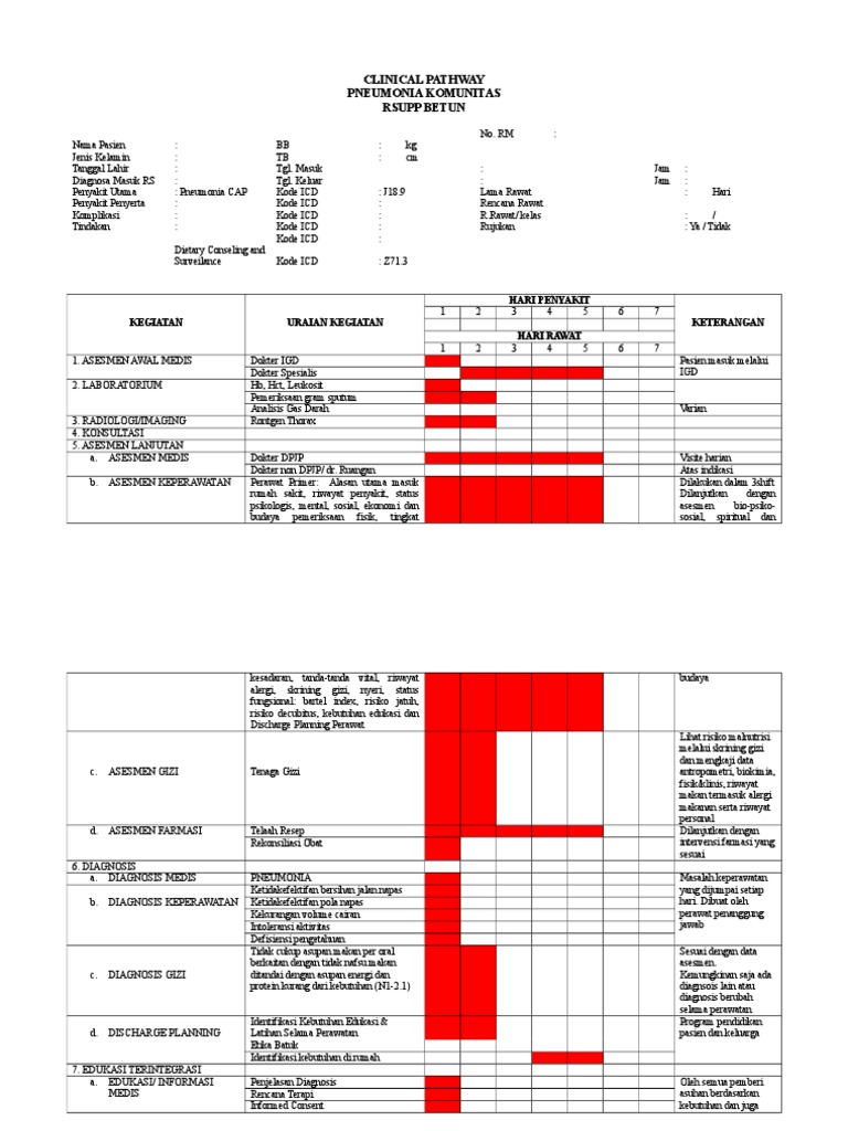 Penyakit Utama : Pneumonia CAP Kode ICD : J18.9 Lama Rawat : Hari