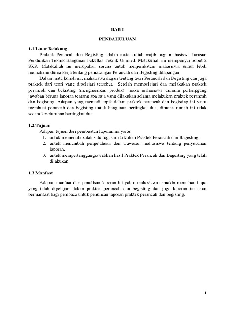 bermanfaat bagi pembaca untuk penulisan laporan praktek perancah dan begisting.