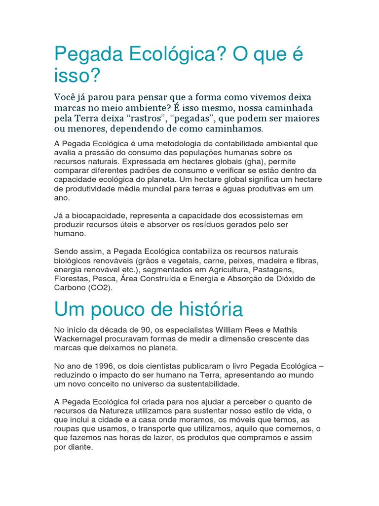 A Pegada Ecológica foi criada para nos ajudar a perceber o quanto de
