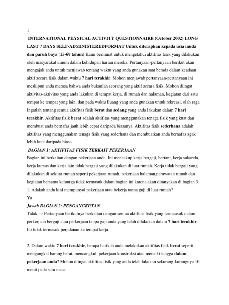 Bagian ini adalah berkaitan dengan aktifitas fisik yang mungkin telah anda lakukan dalam waktu