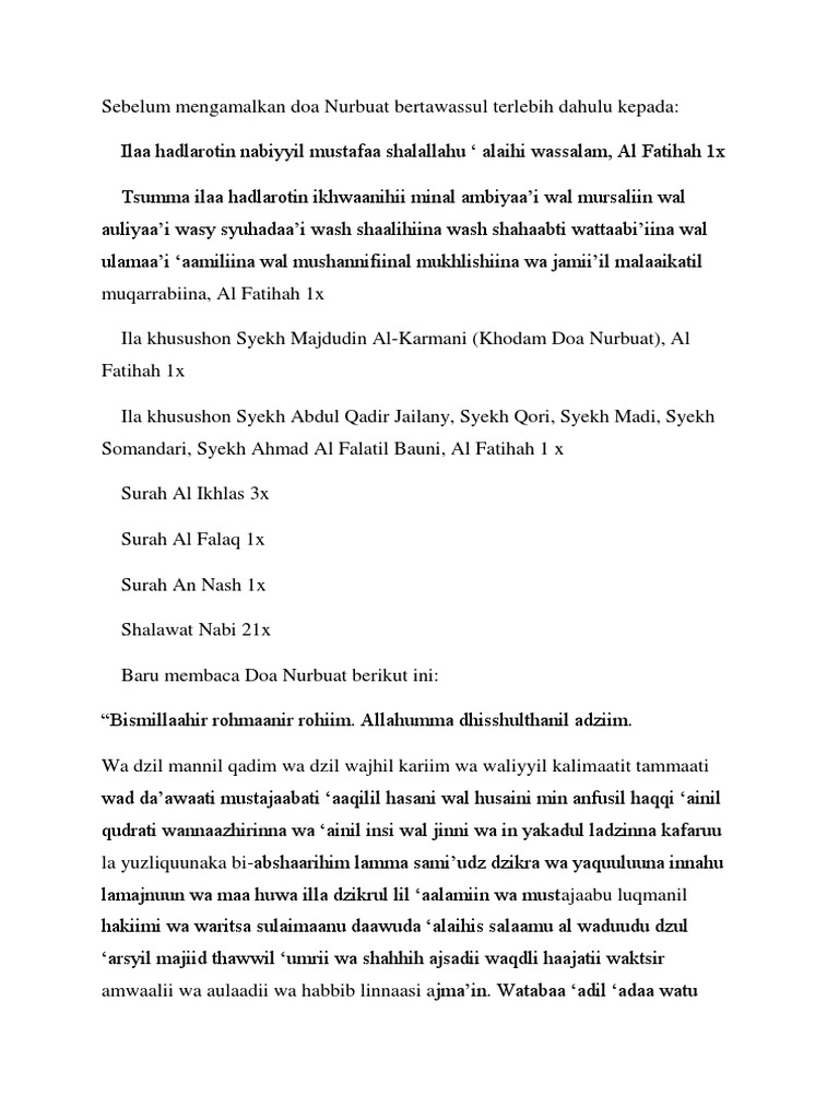 Ila khusushon Syekh Majdudin Al-Karmani (Khodam Doa Nurbuat), Al