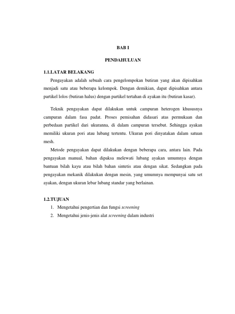 pemisahan partikel padatan maka disitulah screening akan digunakan. Tapi dalam