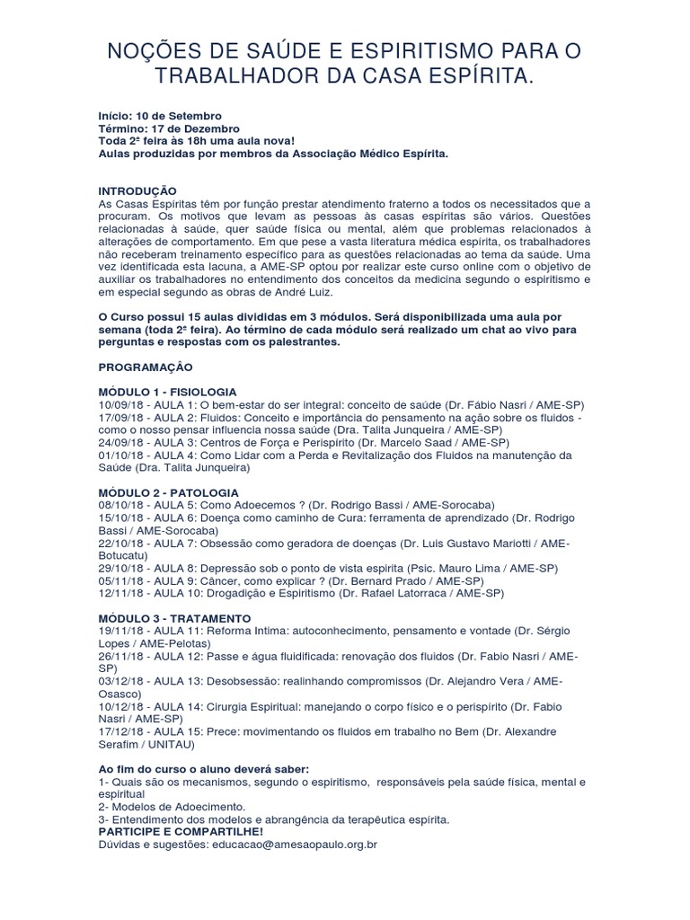 auxiliar os trabalhadores no entendimento dos conceitos da medicina segundo o espiritismo e