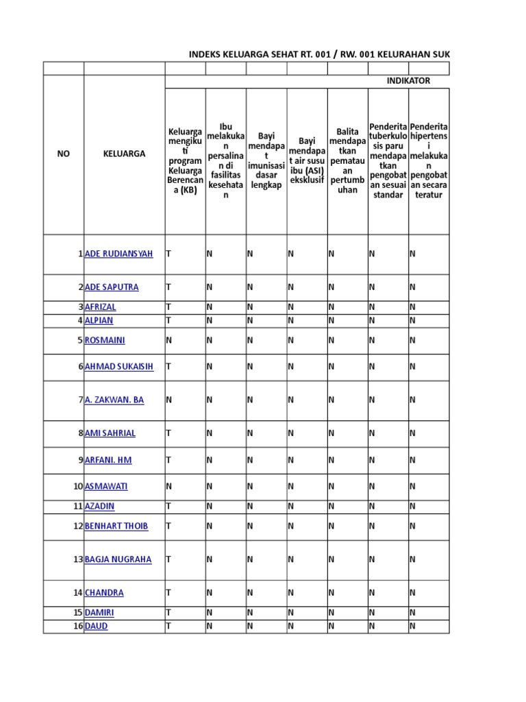1 ADE RUDIANSYAH T N N N N N N