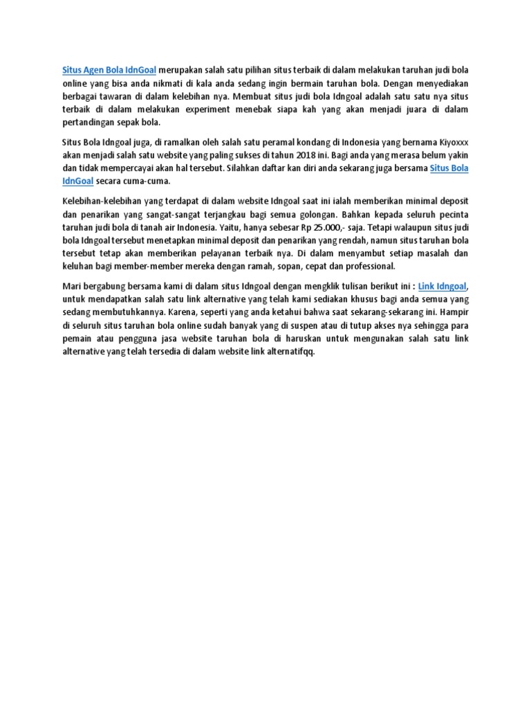 Situs Agen Bola IdnGoal merupakan salah satu pilihan situs terbaik di dalam melakukan taruhan judi bola