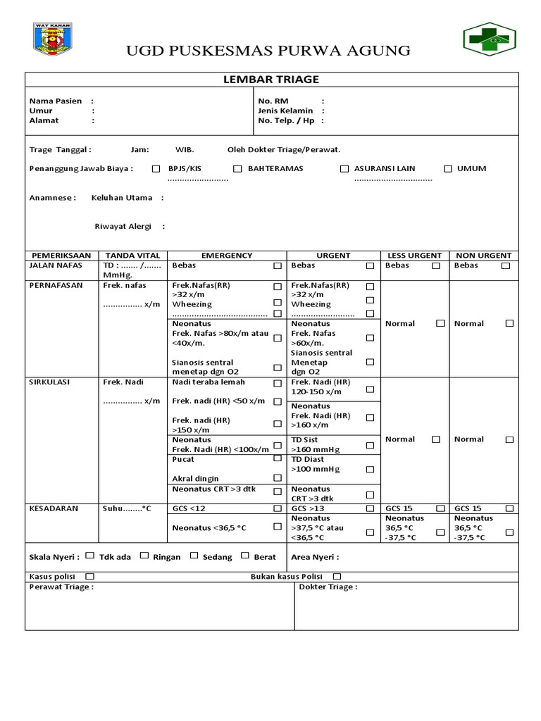 Trage Tanggal : Jam: WIB. Oleh Dokter Triage/Perawat.