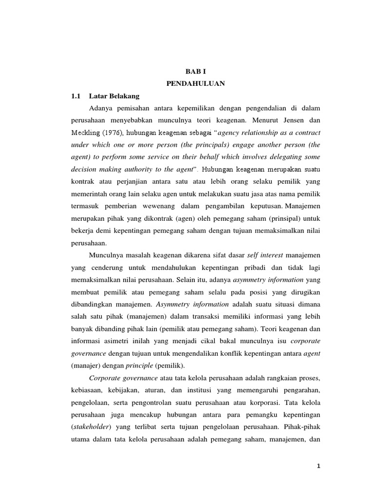 Meckling (1976), hubungan keagenan sebagai “agency relationship as a contract