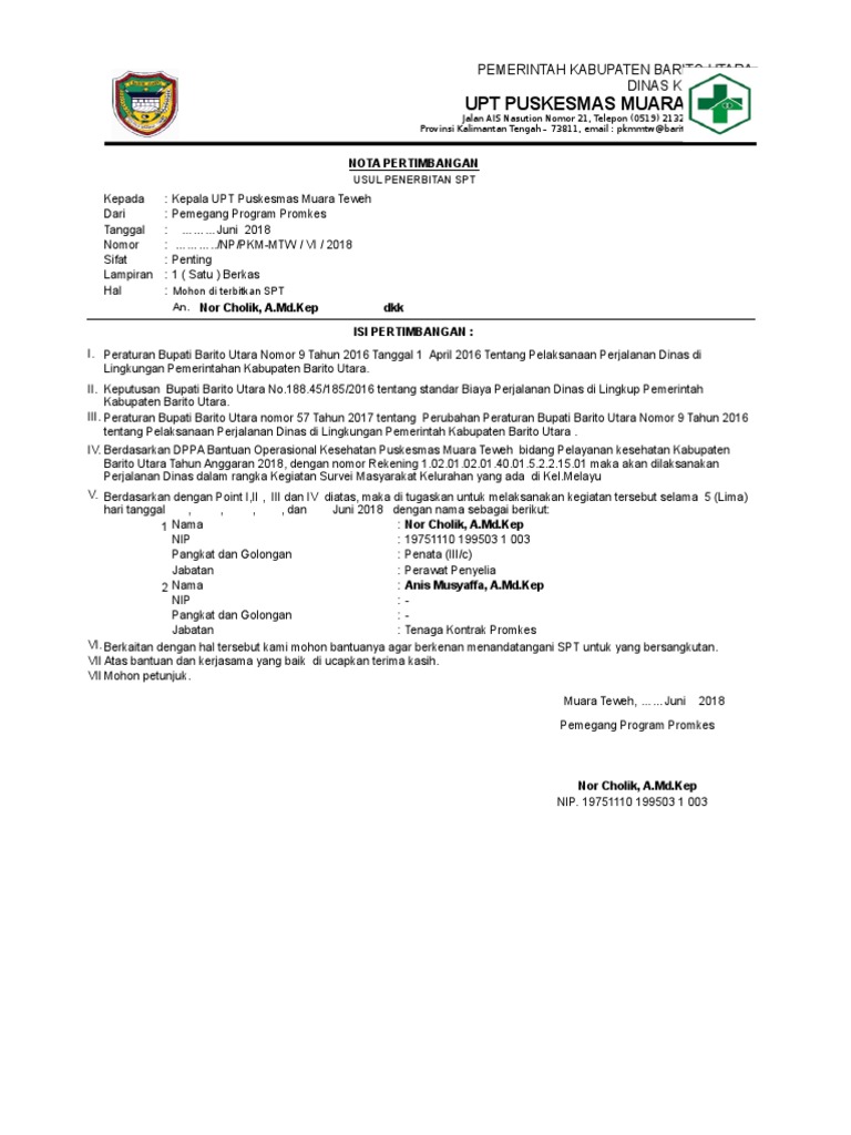 4 Nota Pertimbangan Nomor : /NP/PKM-MTW/ VI /2018 tentang penugasan atau pengajuan penerbitan Surat