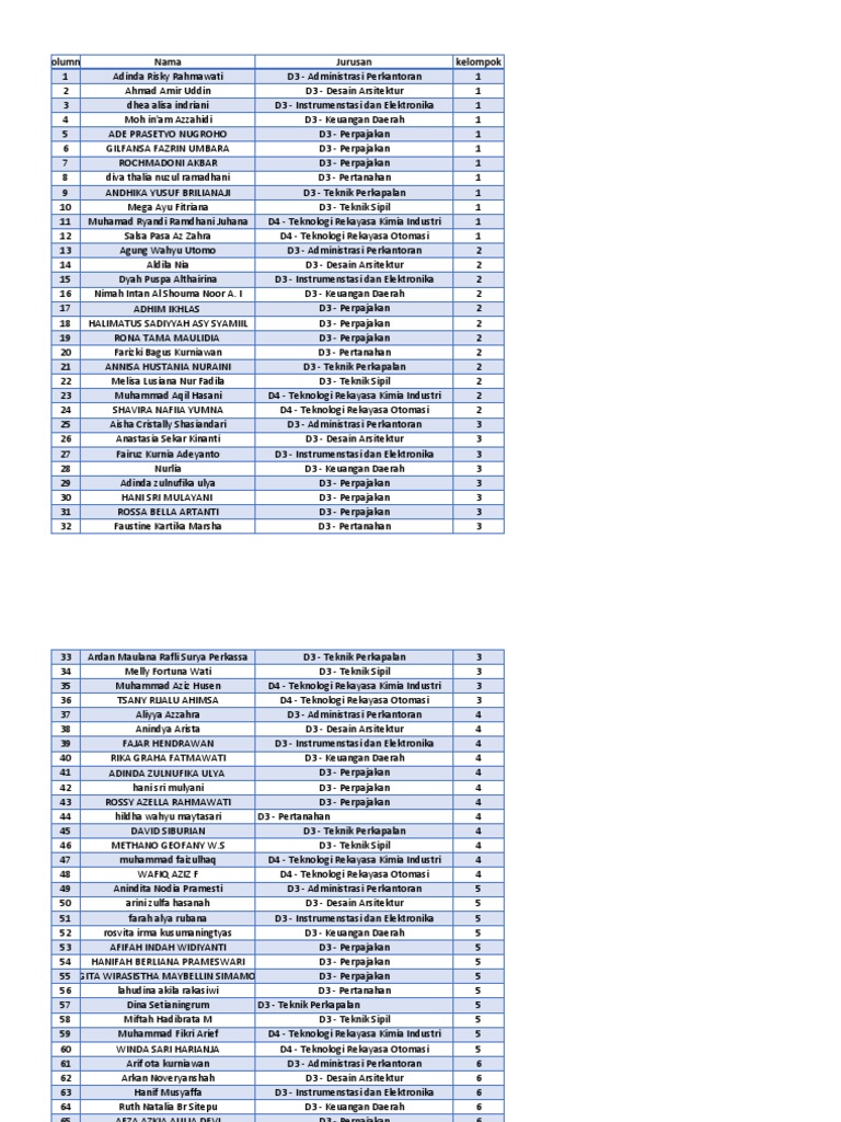Column1 Nama Jurusan kelompok