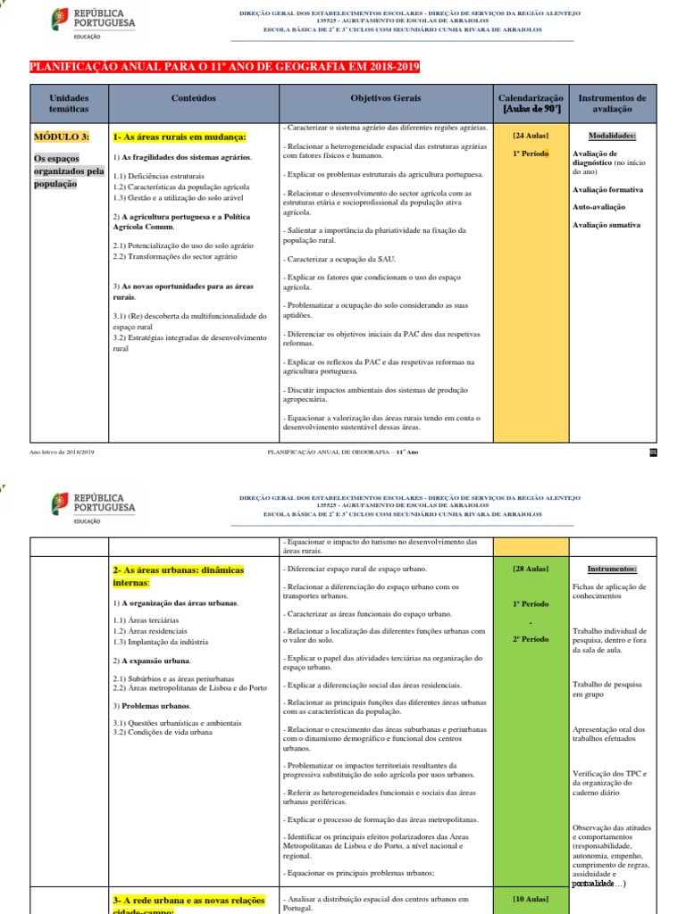 ORGANIZAÇÃO E LEITURA DA PLANIFICAÇÃO ANUAL PARA O 11º ANO DE GEOGRAFIA