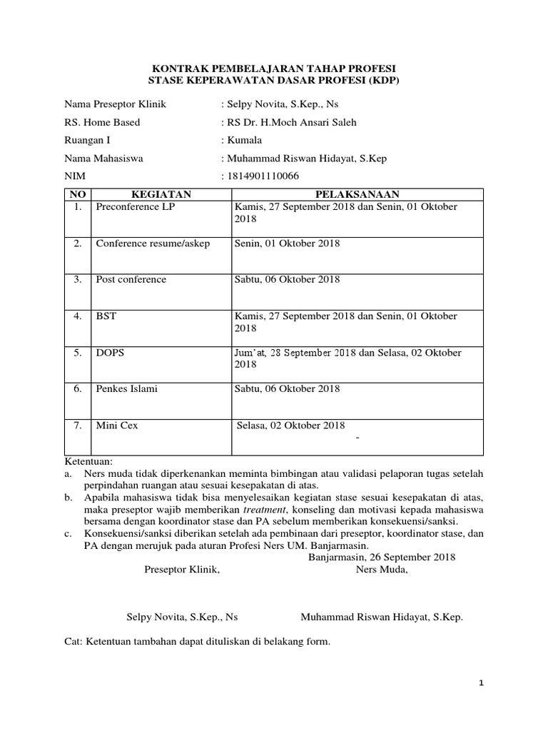 FORMAT KONTRAK PEMBELAJARAN TAHAP PROFESI