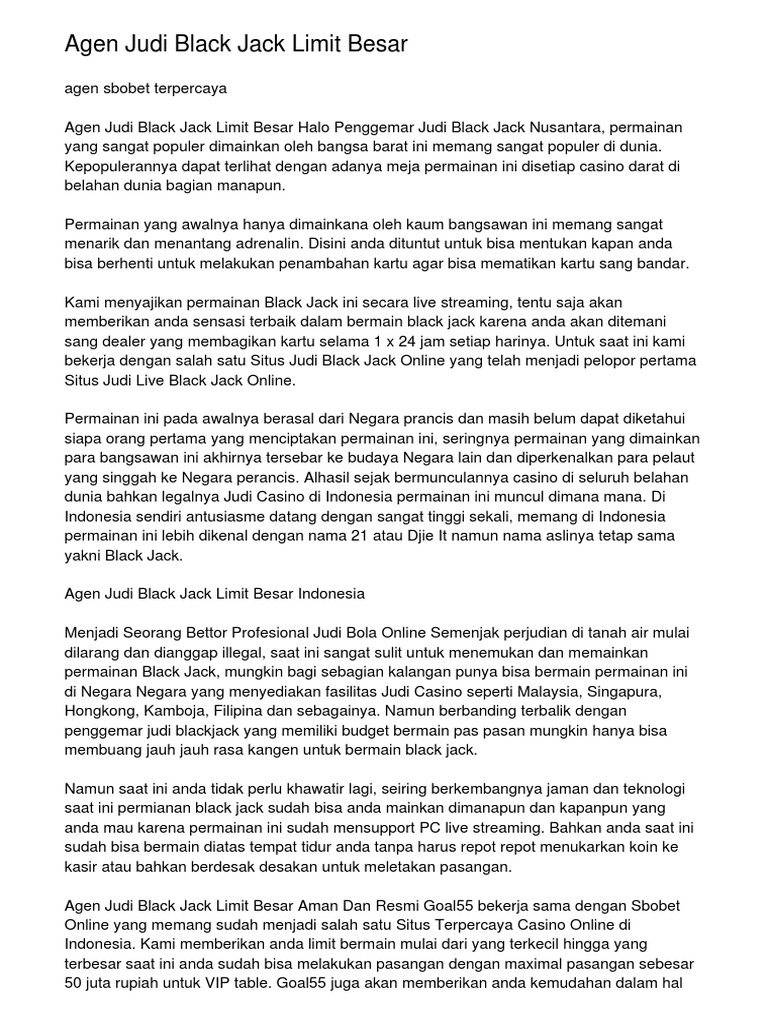 Agen Judi Black Jack Limit Besar Aman Dan Resmi Goal55 bekerja sama dengan Sbobet