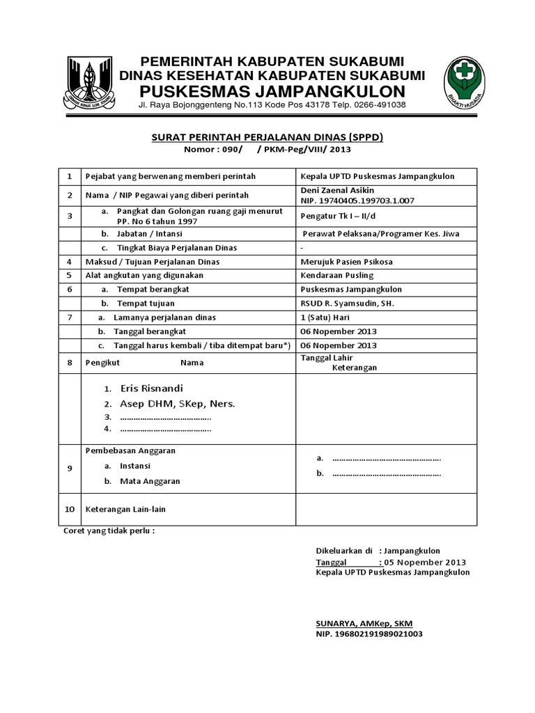 Kepala UPTD Puskesmas Jampangkulon Pejabat yang berwenang menerbitkan SPPD, pegwai yang melakukyaan perjalanan Dinas,