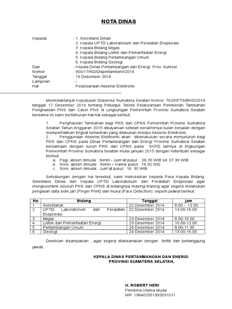 memperhatikan tingkat kehadiran yang dilakukan melalui Absensi Elektronik.