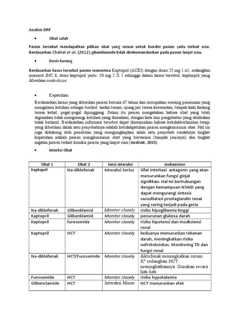 Berdasarkan kasus tersebut pasien menerima Kaptopril (ACEI) dengan dosis 25 mg 1 x1, sedangkan
