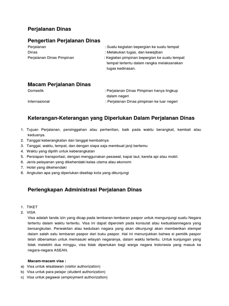 Keterangan-Keterangan yang Diperlukan Dalam Perjalanan Dinas