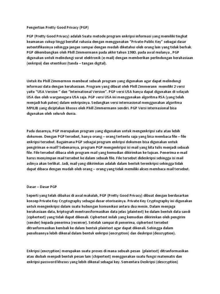 PGP (Pretty Good Privacy) adalah Suatu metode program enkripsi informasi yang memiliki tingkat