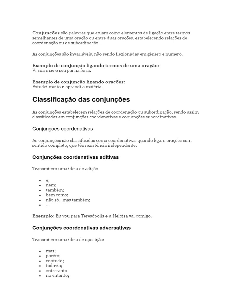 classificadas em conjunções coordenativas e conjunções subordinativas.