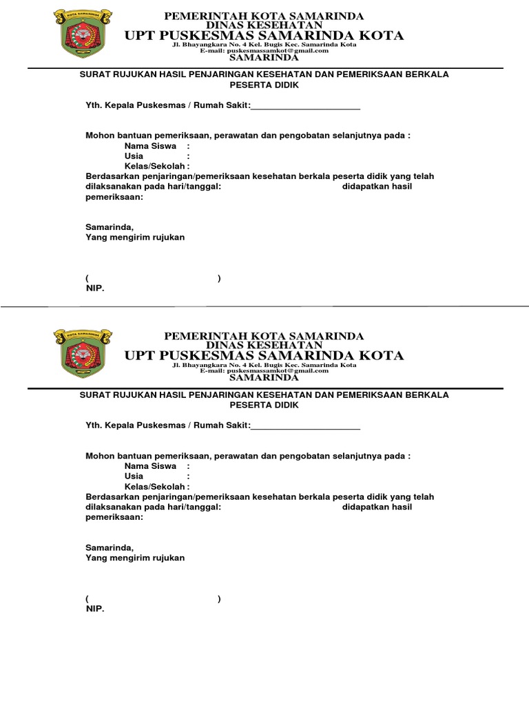 SURAT RUJUKAN HASIL PENJARINGAN KESEHATAN DAN PEMERIKSAAN BERKALA