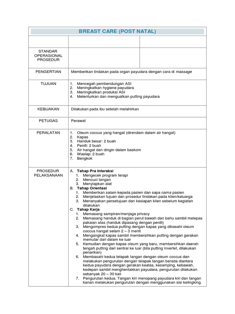 KETRAMPILAN BREAST CARE (POST NATAL)
