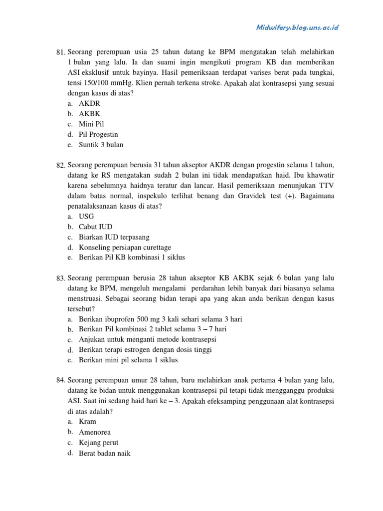 84. Seorang perempuan umur 28 tahun, baru melahirkan anak pertama 4 bulan yang lalu,