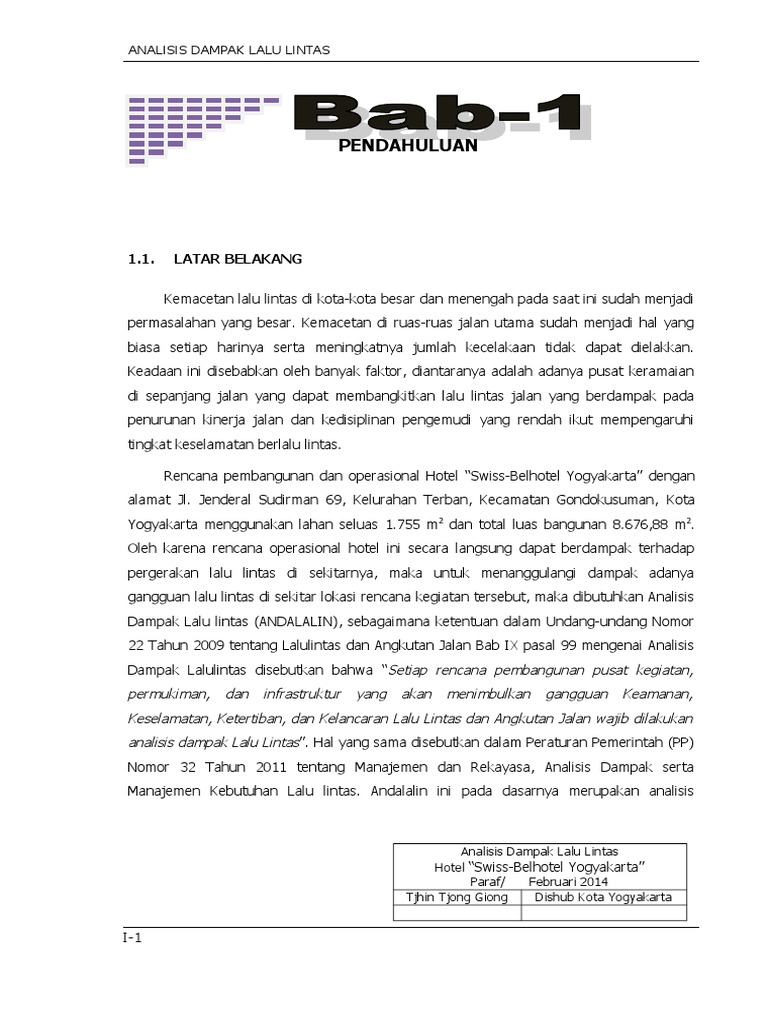dampak lalu lintas Hotel “Swiss-Belhotel Yogyakarta”.