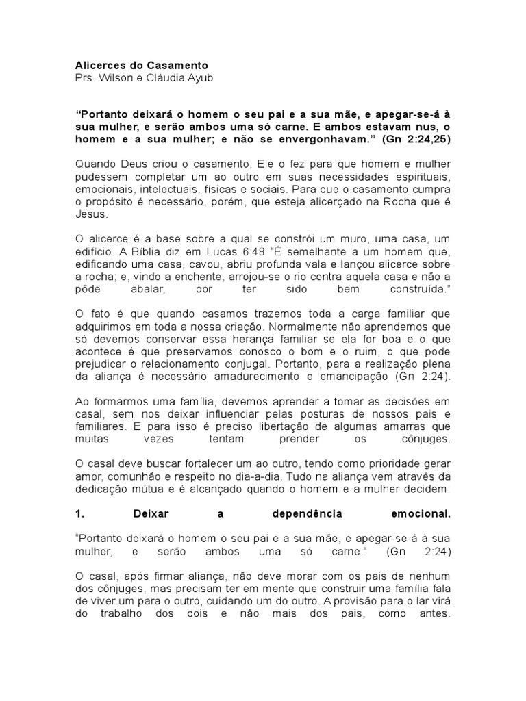emocionais, intelectuais, físicas e sociais. Para que o casamento cumpra