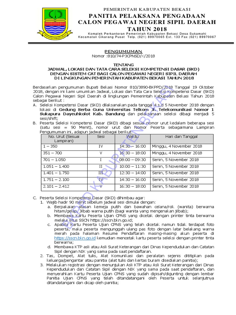 Calon Pegawai Negeri Sipil Daerah di lingkungan Pemerintah Kabupaten Bekasi Tahun 2018