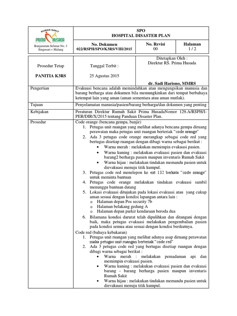 Singosari – Malang 022/RSPH/SPO/K3RS/VIII/2015 00 1/2