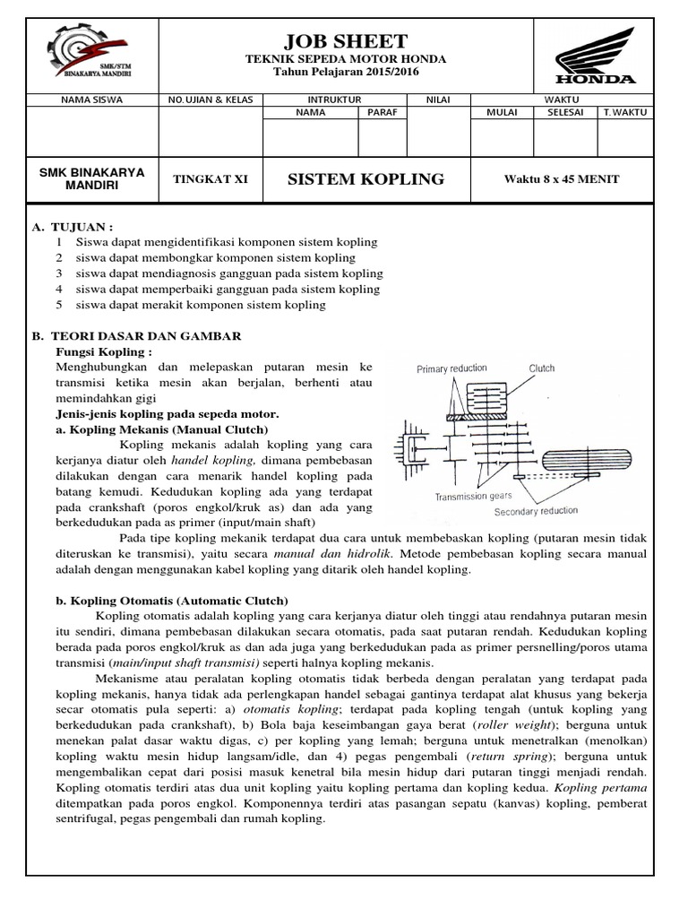 1 Siswa dapat mengidentifikasi komponen sistem kopling