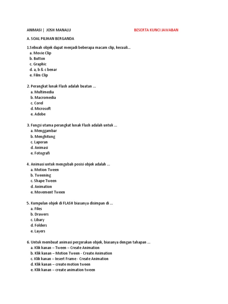 ANIMASI | JOSH MANALU BESERTA KUNCI JAWABAN