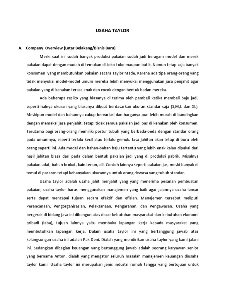 “TAYLOR” yang ter update dan mengerti akan kebutuhan konsumen. Usaha bisnis ini taylor ini