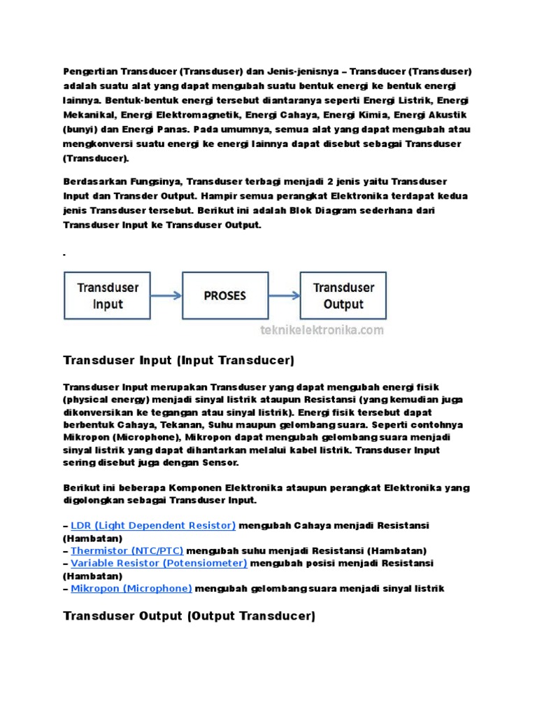dari Transduser Input dan Transduser Output. Dalam Perangkat Elektronika yang
