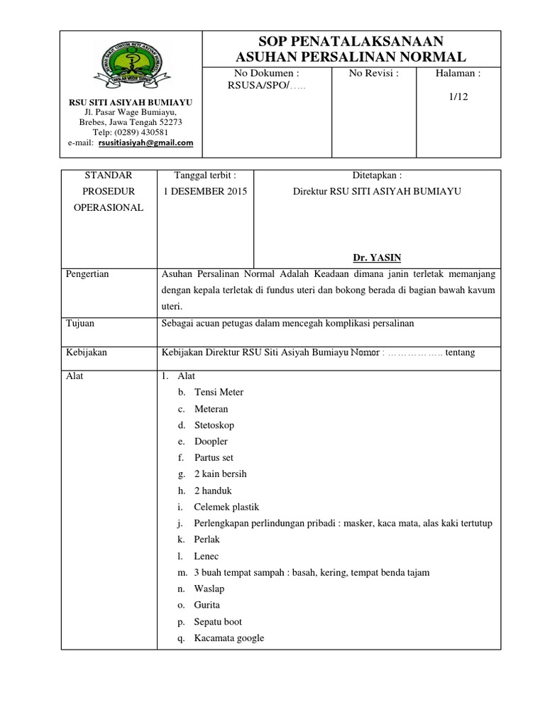 SOP PENATALAKSANAAN