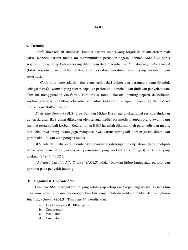 Code blue team adalah : tim yang terdiri dari dokter dan paramedis yang ditunjuk