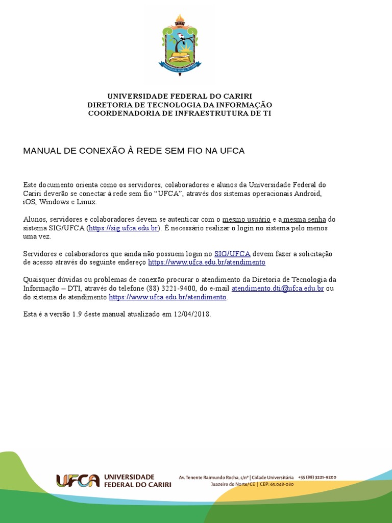 MANUAL DE CONEXÃO À REDE SEM FIO NA UFCA