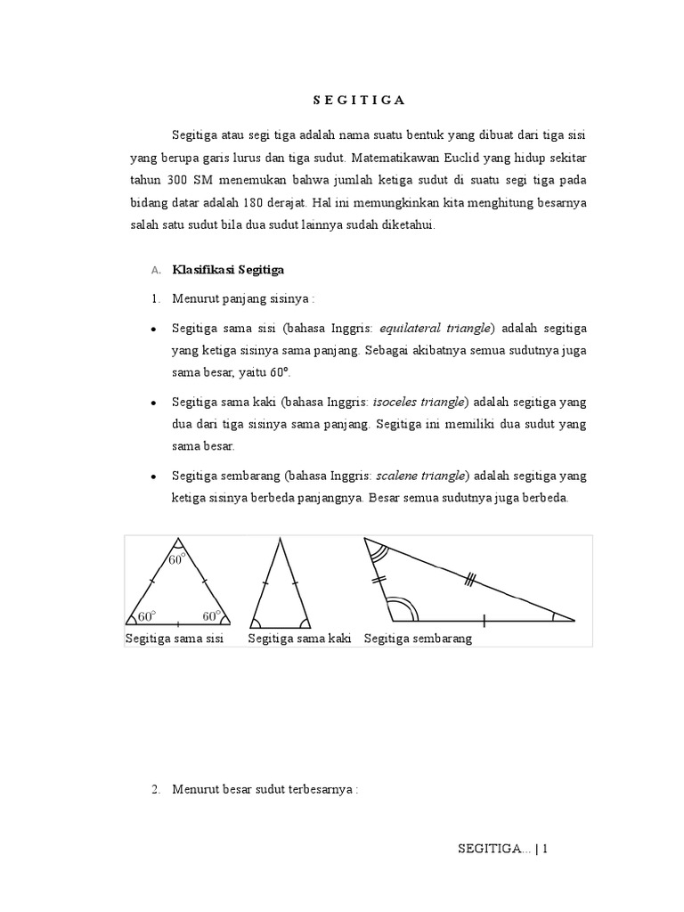 Segitiga sama sisi Segitiga sama kaki Segitiga sembarang