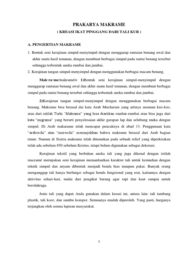 macramé merupakan seni kerajinan memanfaatkan karakter tali untuk kemudian dengan