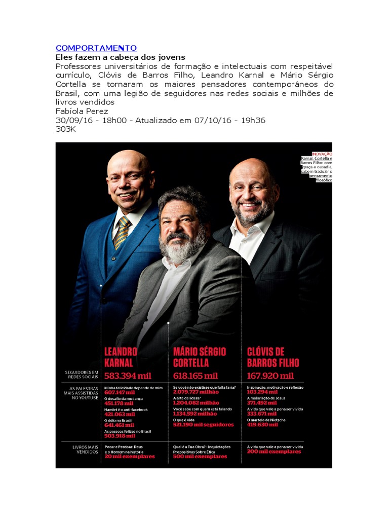 visualizações. Há algumas semanas, Cortella, Karnal e outros
