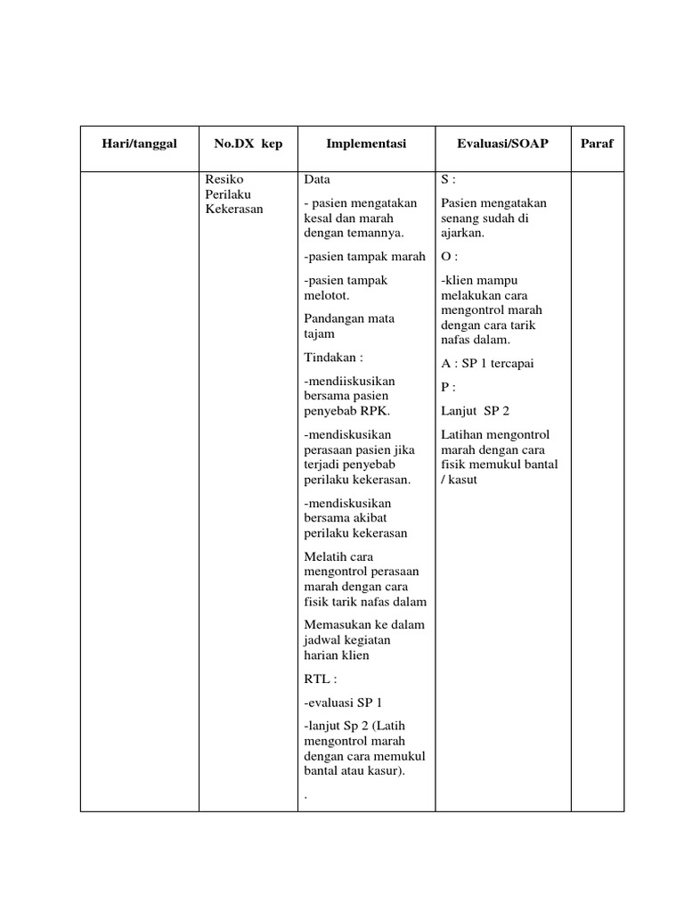 Hari/tanggal No.DX kep Implementasi Evaluasi/SOAP Paraf