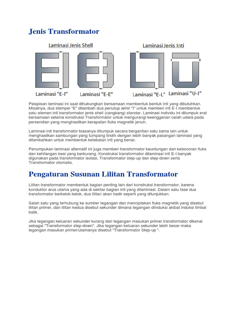 Laminasi yang digunakan dalam konstruksi transformator adalah potongan logam insulasi yang