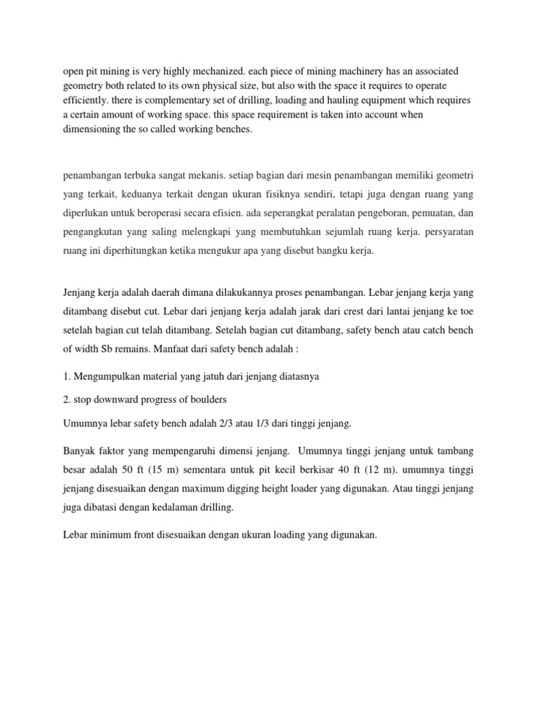 diperlukan untuk beroperasi secara efisien. ada seperangkat peralatan pengeboran, pemuatan, dan