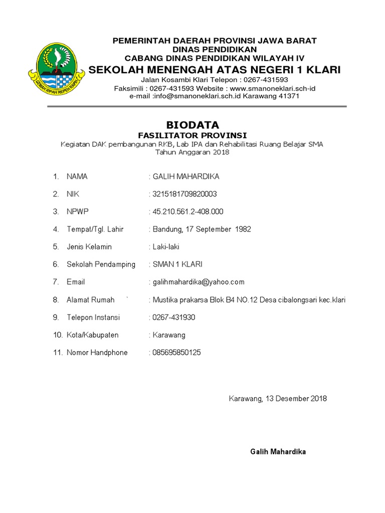 e-mail :info@smanoneklari.sch.id Karawang 41371