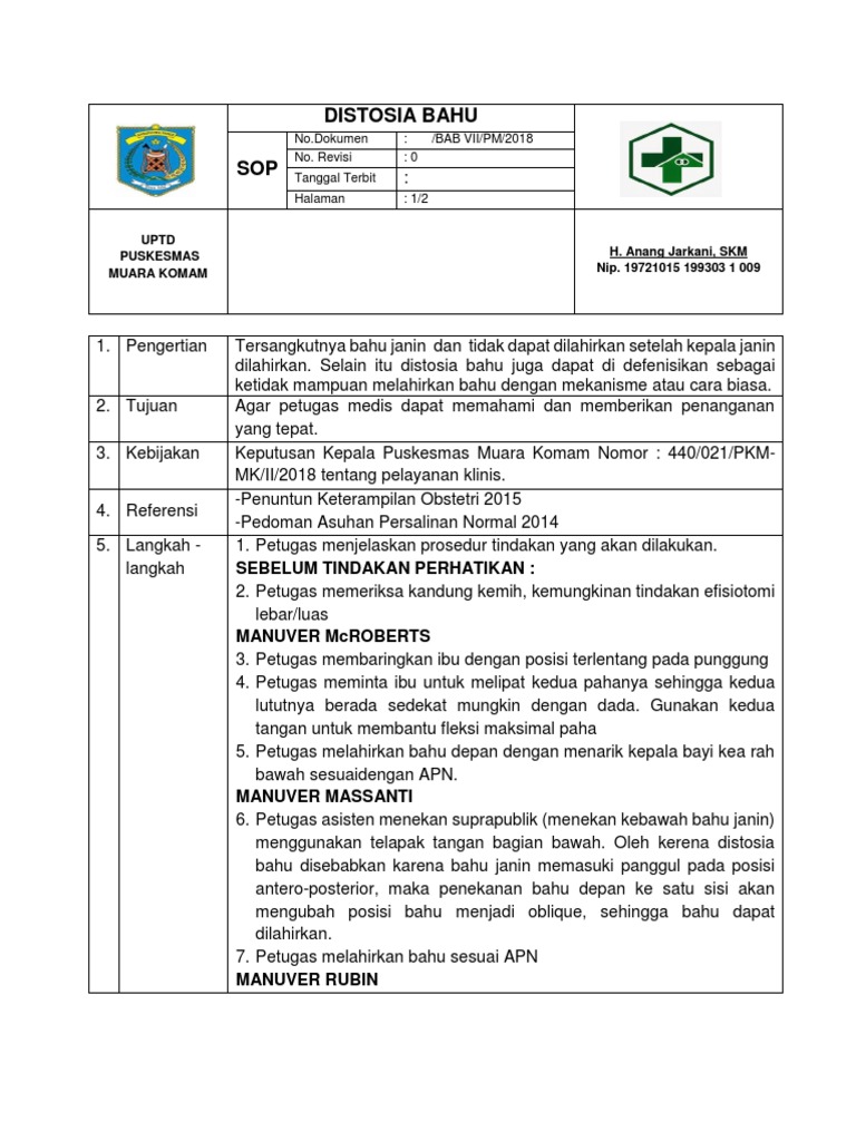 3. Kebijakan Keputusan Kepala Puskesmas Muara Komam Nomor : 440/021/PKM-